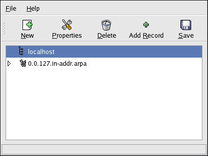 After adding, editing, or deleting a zone, you must choose click the Save button or select File => Save to write the /etc/named.conf configuration file and all the individual zone files in the /var/named directory. Saving changes also causes the named service to reload the configuration files. Selecting File => Quit saves the changes before quitting the application.
