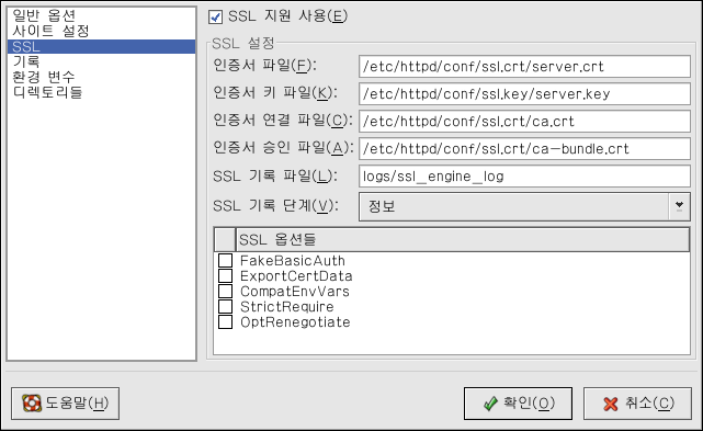 ¸¸ÀÏ Apache HTTP ¼¹ö°¡ SSL Áö¿ø ¾øÀÌ ¼³Á¤µÇ¾ú´Ù¸é, Apache HTTP ¼¹ö¿Í Ŭ¶óÀÌ¾ðÆ® »çÀÌÀÇ Åë½ÅÀº ¾ÏȣȵÇÁö ¾Ê±â ¶§¹®¿¡ °³ÀÎ Á¤º¸³ª ºñ¹Ð Á¤º¸°¡ ÀúÀåµÇÁö ¾ÊÀº À¥ »çÀÌÆ®¿¡ ÀûÇÕÇÕ´Ï´Ù. ¿¹·Î µé¸é °ø°³ ¼Ò½º ¼ÒÇÁÆ®¿þ¾î¿Í ¹®¼ ÀڷḦ ¹èÆ÷ÇÏ´Â °ø°³ ¼Ò½º À¥»çÀÌÆ®¿¡¼´Â º¸¾È Åë½ÅÀÌ ÇÊ¿äÇÏÁö ¾Ê½À´Ï´Ù. ÇÏÁö¸¸ ½Å¿ë Ä«µå Á¤º¸¸¦ ÇÊ¿ä·ÎÇÏ´Â ÀüÀÚ »ó°Å·¡ À¥»çÀÌÆ®ÀÇ °æ¿ì¿¡´Â ¹Ýµå½Ã Åë½ÅÀ» ¾ÏÈ£ÈÇϱâ À§ÇÏ¿© Apache SSL Áö¿øÀ» »ç¿ëÇØ¾ß ÇÕ´Ï´Ù. Apache SSL Áö¿øÀ» »ç¿ëÀ» Ȱ¼ºÈÇÑ´Ù¸é mod_ssl º¸¾È ¸ðµâÀÇ »ç¿ëµµ Ȱ¼ºÈµË´Ï´Ù. HTTP ¼³Á¤ µµ±¸¸¦ ÅëÇÏ¿© Apache SSL Áö¿øÀ» Ȱ¼ºÈÇϱâ À§Çؼ´Â ÁÖ ÅÇ => »ç¿ë °¡´ÉÇÑ Áּҵ鿡¼ 443 Æ÷Æ®¸¦ ÅëÇÑ Á¢¼ÓÀ» Çã¿ëÇØ¾ß¸¸ ÇÕ´Ï´Ù. º¸´Ù ÀÚ¼¼ÇÑ »çÇ׿¡ ´ëÇØ¼´Â 19.1 ÀýÀ» ÂüÁ¶ÇϽñ⠹ٶø´Ï´Ù. ±× ÈÄ °¡»ó È£½ºÆ® ÅÇ¿¡¼ °¡»ó È£½ºÆ®¸íÀ» ¼±ÅÃÇÏ°í ÆíÁý ¹öưÀ» Ŭ¸¯ÇÕ´Ï´Ù. ¿ÞÂÊ¿¡ À§Ä¡ÇÑ ¸Þ´º¿¡¼ SSLÀ» ¼±ÅÃÇϽŠÈÄ ±×¸² 19-9¿¡¼ º¸¿©ÁöµíÀÌ SSL Áö¿ø »ç¿ë ¿É¼ÇÀ» üũÇÕ´Ï´Ù. SSL ¼³Á¤ ºÎºÐÀº °¡Â¥ µðÁöÅÐ ÀÎÁõ¼ (dummy digital certificate)¸¦ »ç¿ëÇÏ¿© ¹Ì¸® ¼³Á¤µÇ¾ú½À´Ï´Ù. µðÁöÅÐ ÀÎÁõ¼´Â º¸¾È À¥ ¼¹ö¸¦ À§ÇÑ ÀÎÁõÀ» Á¦°øÇϸç Ŭ¶óÀÌ¾ðÆ® À¥ ºê¶ó¿ìÀú¿¡ ´ëÇÑ º¸¾È ¼¹ö¸¦ ½Äº°ÇÕ´Ï´Ù. Red Hat Linux¿¡¼ Á¦°øÇÑ °¡Â¥ µðÁöÅÐ ÀÎÁõ¼¸¦ ¿©·¯ºÐ À¥»çÀÌÆ®¿¡ »ç¿ëÇÏÁö ¸¶½Ê½Ã¿À. CA-½ÂÀÎ µðÁöÅÐ ÀÎÁõ¼¸¦ ±¸ÀÔÇÏ´Â ¹æ¹ý¿¡ ´ëÇÑ ÀÚ¼¼ÇÑ Á¤º¸¸¦ ¿øÇϽŴٸé 20 ÀåÀ» ÂüÁ¶ÇϽñ⠹ٶø´Ï´Ù.
