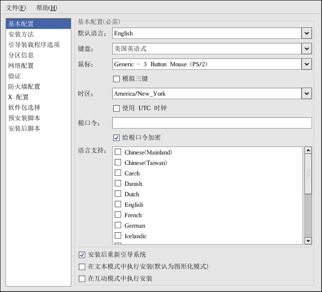 Kickstart 配置器允许你使用图形化用户界面来创建 kickstart 文件,因此你不必记住文件的正确语法。