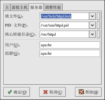 「服务器」标签允许你配置基本的服务器设置。默认设置在多数情况下都是适用的。