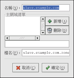 如要新增一個次網域(也稱為一個 secondary master),請點選 新增 的按鈕,再選擇 『次網域』,然後在 『網域名稱』 的文字區域輸入次網域的網域名稱。