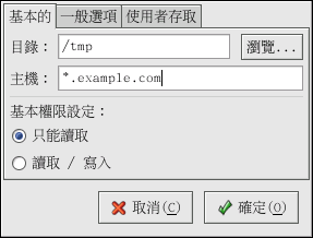 如要新增一個 NFS 共享,請點選 新增 按鈕,將會出現如 圖形 16-2 所示的對話窗。
