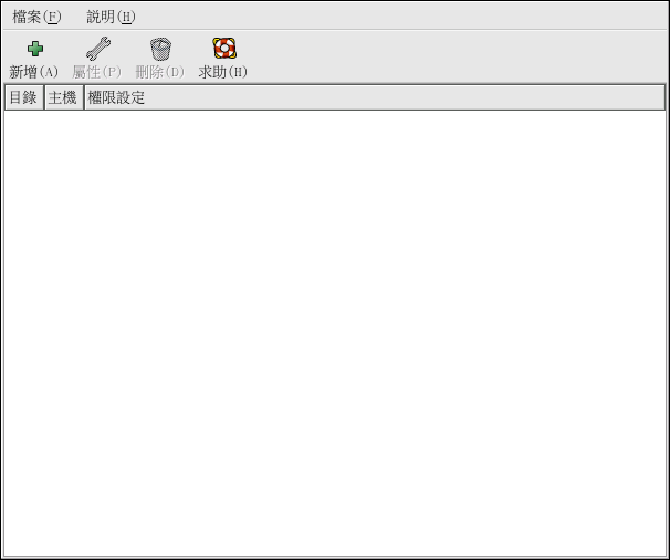 主機 — 指定可以共享這個目錄的主機,請參考 菴 16.3.2 節 以取得可用格式的解釋。