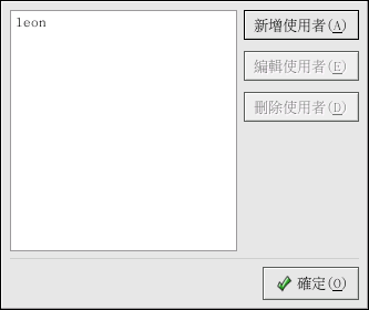 如要編輯一個既有的使用者,請從清單中選取該使用者,再點選 編輯使用者 的按鈕。 如要刪除一個既有的使用者,請選取該使用者,再點選 刪除使用者 的按鈕。 刪除一個 Samba 使用者並不會刪除相關的 Red Hat Linux 使用者帳號。