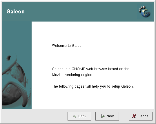 Galeon is a Web browser that is based on Mozilla. It is only a Web browser and does not feature email, newsgroups, or anything other than Web browsing and searching. This can be useful if you want to browse the Web without the need to email or chat with others. Galeon also has some extra features that are not included in Mozilla.