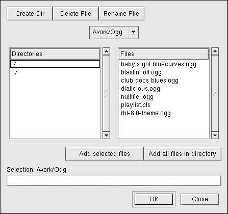 In Figure 10-4, you see that there are several files to choose from. The files that end in .ogg are Ogg Vorbis files, a popular new audio file format; the .pls file is an audio playlist file. You can use XMMS to add audio files into a list and then save it as a playlist. This can be convenient if you have several audio files and you want to categorize them (for example, by genre or artist). Highlight the file you wish to play (if you have multiple files, click and hold the mouse button and drag it over all of the files you want to open) and click OK. Notice that XMMS begins to play your audio files immediately. To adjust the volume click the volume slider (the long slider above the Open button) to the left to lower the volume or to the right to increase it like a CD player. There are also buttons to stop, pause, and skip (backward and forward) your audio files.
