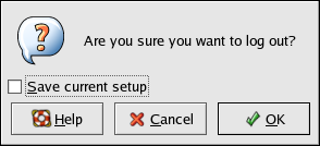 When the confirmation dialog appears as shown in Figure 1-13, select the Logout option and click the Yes button. To save the configuration of your desktop, as well as any programs which are running, check the Save current setup option.