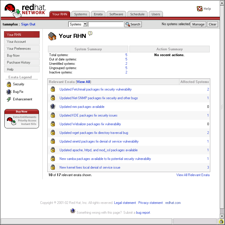 Red Hat ネットワークを利用すると、 ユーザーは更新パッケージがリリースされた時に電子メールの連絡を受けますので時間の節約となります。 最新のパッケージに関する情報やセキュリティに関する情報を求めてWebを検索する必要もなくなります。デフォルトでは、 Red Hat ネットワークによってパッケージもインストールされます。ユーザーは RPM の使用方法を理解する必要もなく、ソフトウェア パッケージの依存関係の解決を気にする必要もありません。RHNがすべての作業を実行します。