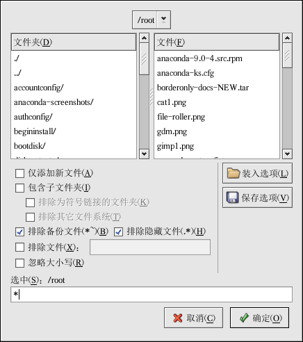 如果你需要腾出一些硬盘空间,或者把多个文件或某一目录下的所有文件发送给另一名用户,文件打包器允许你创建文件和目录的归档。要创建新归档,点击工具栏上的「新建」按钮。一个文件浏览器会弹出,允许你指定归档名称和压缩技术。譬如,你可以从拉下菜单中选择「用 gzip 压缩的 Tar (tar.gz) 格式,然后键入你想创建的归档文件的名称。点击「确定」,你就可以在新归档中添加文件和目录了。要在你的新归档中添加文件,点击「添加」,这会弹出一个浏览窗口(图 14-2),你可以从中查找要放入归档中的文件或目录。结束后点击「确定」和「关闭」按钮来关闭归档。