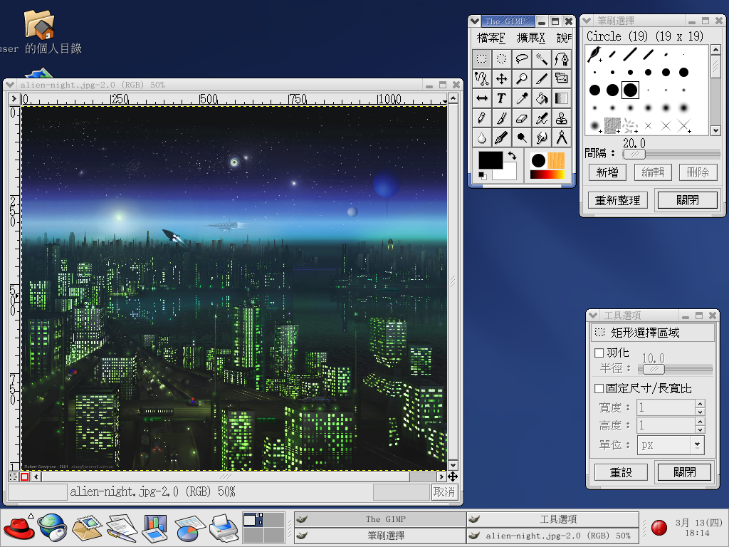 要使用 GIMP,您需要知道一些基本概念。 您可以在 shell 提示符號下使用 gimp 指令來啟動 GIMP。 如要在桌面面板啟動 GIMP, 您必須選擇 『主選單』 => 『圖形』 => 『The GIMP』。