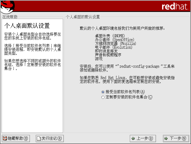 要在安装结束后安装或删除软件包,使用 软件包管理工具。 在 shell 提示下键入 redhat-config-packages 命令来启动 软件包管理工具。如果你不是根用户,它会提示你输入根口令后再继续。 |