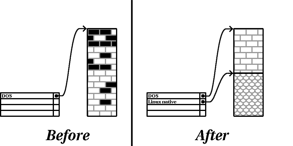 對於這個問題的解決方法就是切割磁碟成 分割區。 每一個分割區可被視為一個不同的磁碟。這是經由增加磁碟分割表(partition table)所達成的。