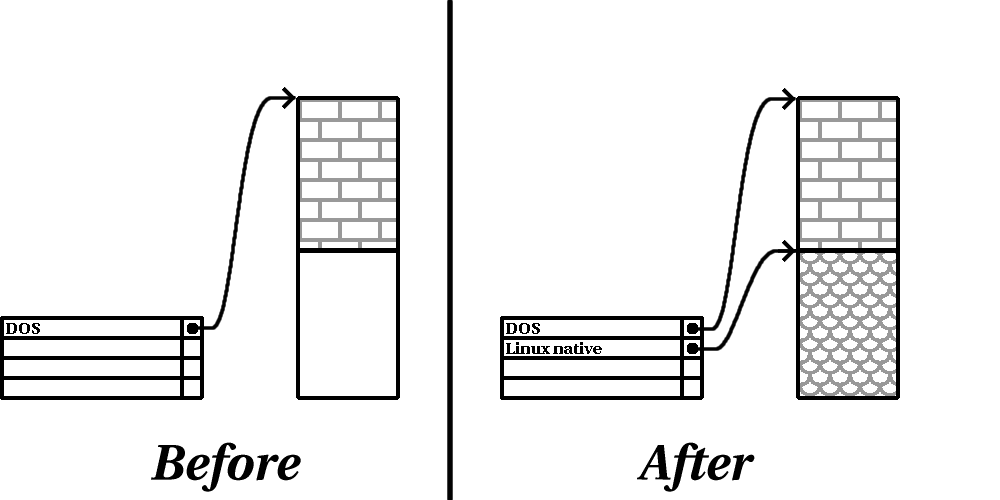 DOS 16 位元 >=32 | 06 | Linux extended | 85 |