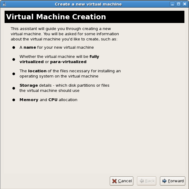 virt-manager, also known as Virtual Machine Manager, provides a graphical tool for administering virtual machines. It uses libvirt-client library as the management API.